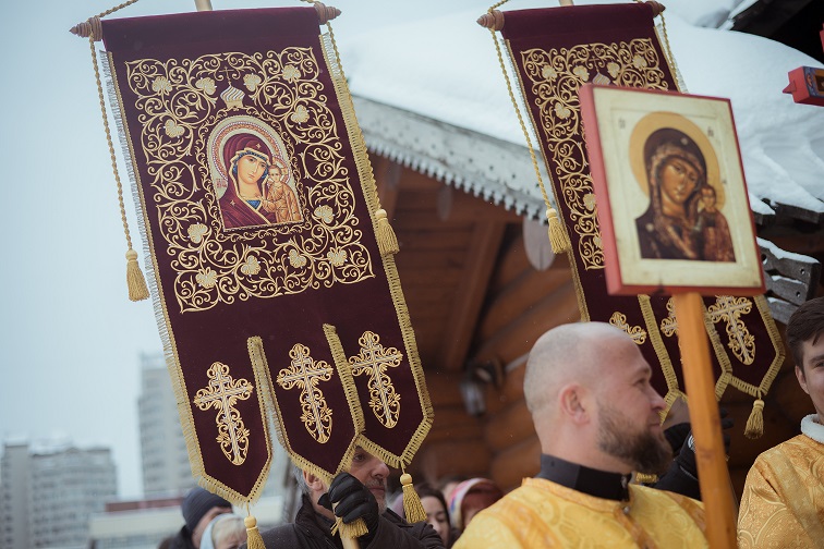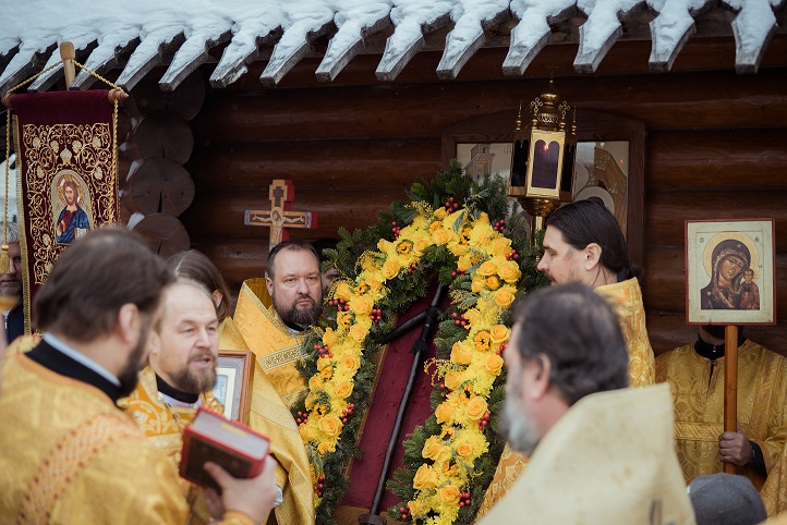 На сугубой ектении были возглашены прошения об Отечестве и защитниках его, об утверждении всех в вере, единомыслии, здравии и силе духа, а также специальные прошения о скорейшем начале строительстве каменного храма в честь святой Нины. Настоятель храма прочитал молитву о Святой Руси.