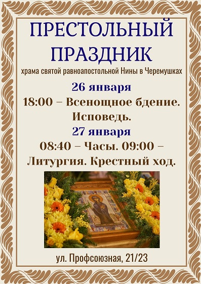 Престол Полная ширина 397 × 562 пикселей В храме Святой равноапостольной Нины в Черёмушках отметили престольный праздник Поделиться:TelegramВКонтактеОдноклассникиЕлицыEmailБольшеTwitterTumblrRedditМой МирPinterest Предыдущее изображение Следующее изображение Добавить комментарий Отменить ответ Ваш e-mail не будет опубликован. Обязательные поля помечены *КомментарийИмя* Email* Сайт 1 × = семь Нажмите галочку (защита от спама) Для того, чтобы иметь возможность комментировать, включите JavaScript в Вашем браузере.