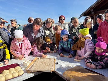 Под руководством технологов НИИ хлебопекарной промышленности все желающие смогли приготовить ароматную булочку-жаворонка.